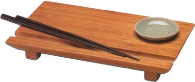 - 6" x 10.5" Burnished Bamboo Board, Celadon porcelain sauce dish and Black chopsticks- A traditional and elegant way to serve sushi